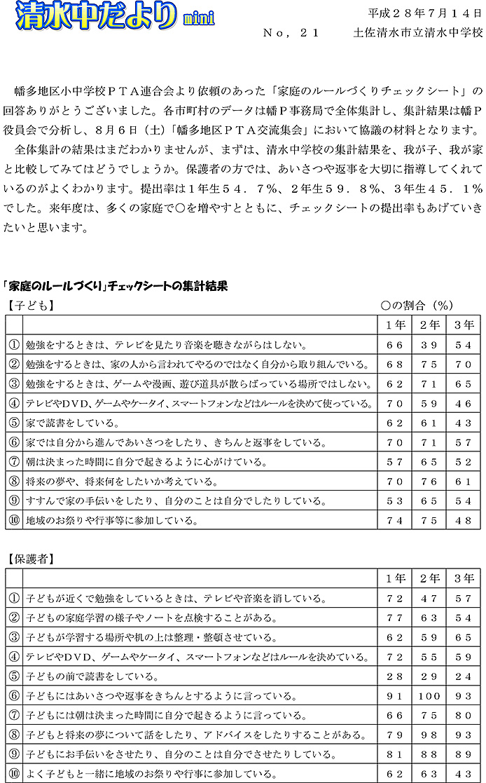 清水中だより mini No.21