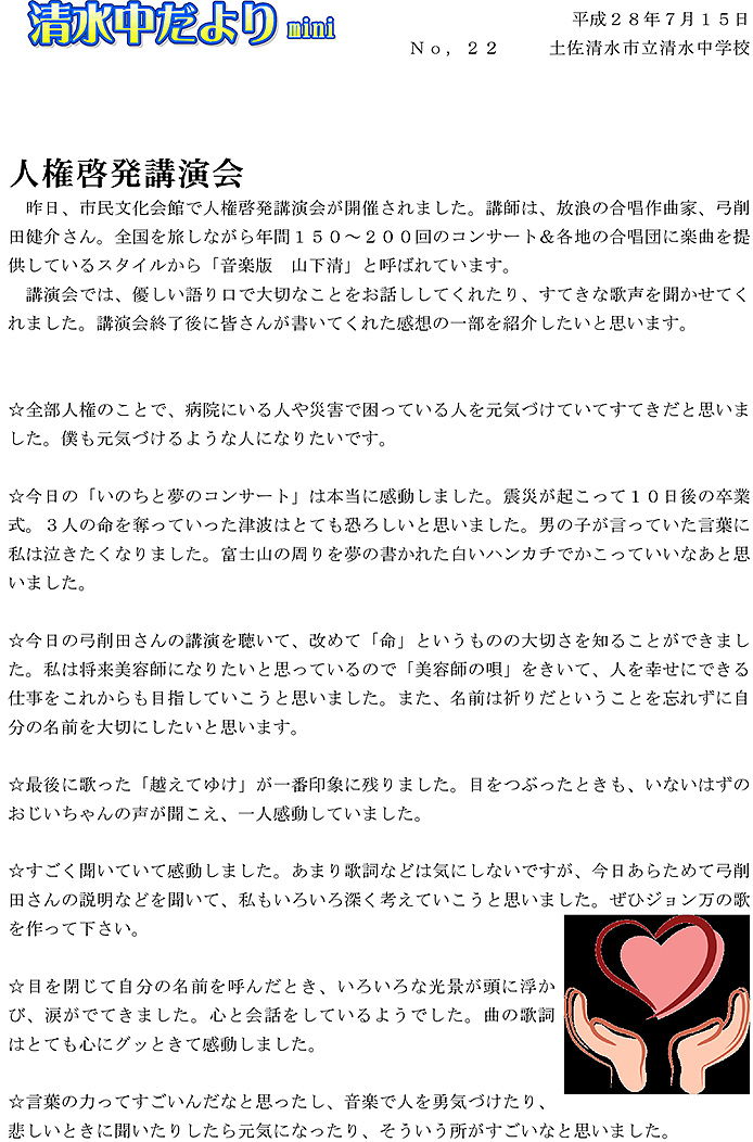 清水中だより mini No.22