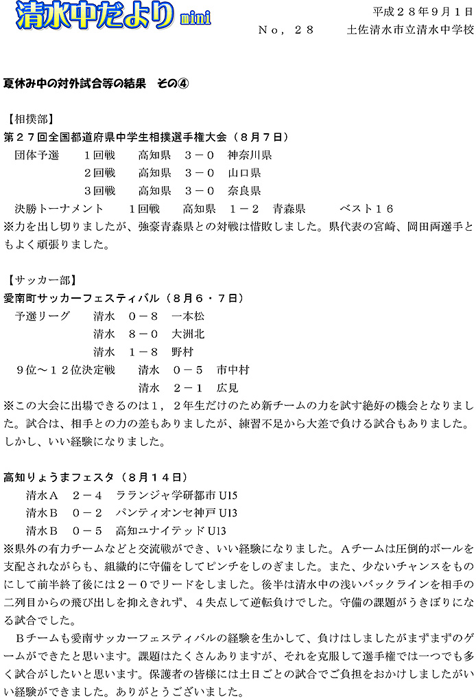 清水中だより mini No.28