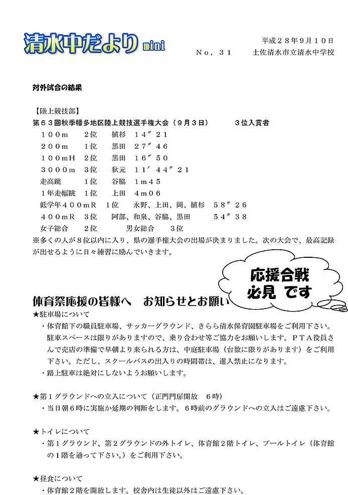 清水中だより mini No.31