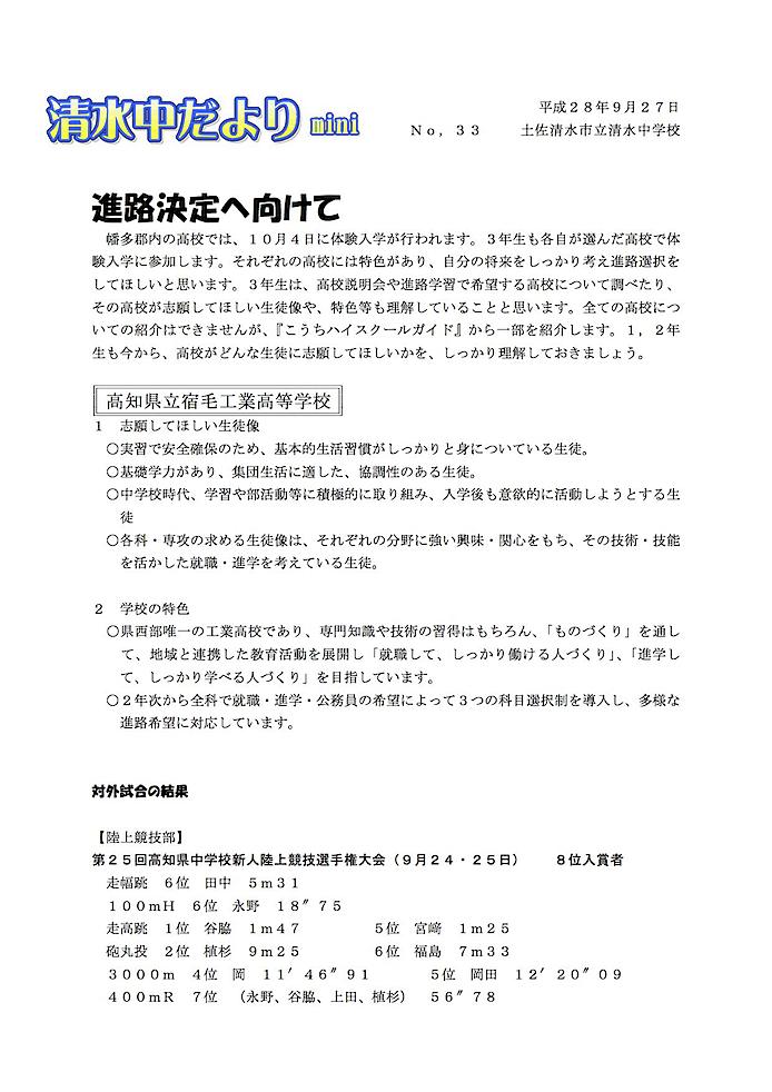 清水中だより mini No.33