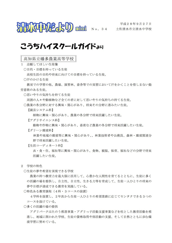 清水中だより mini No.34