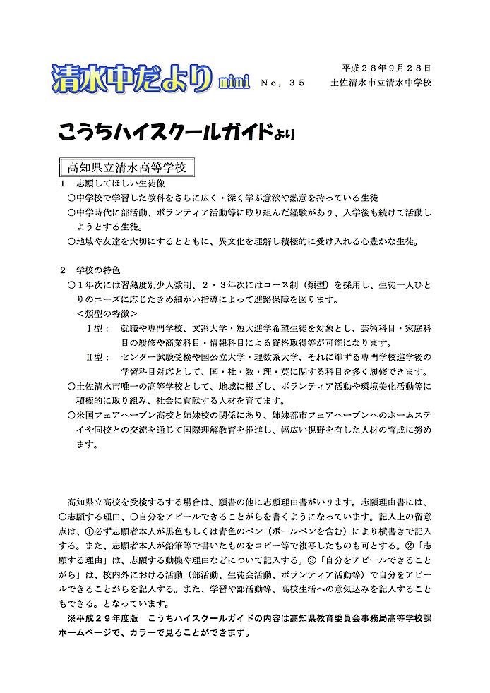 清水中だより mini No.35