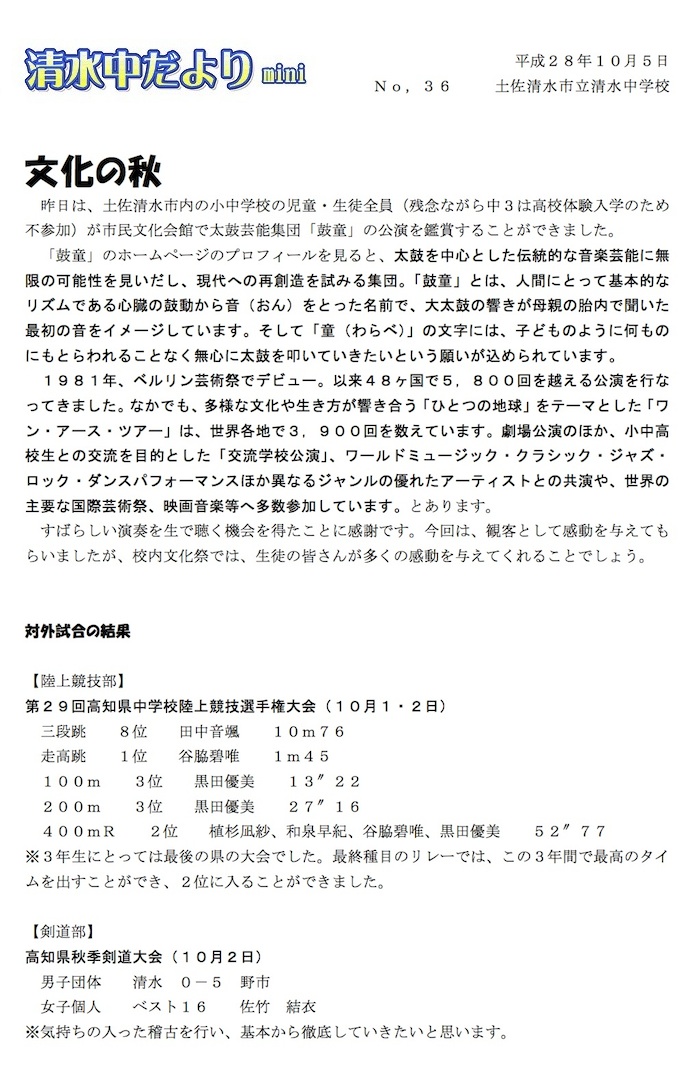 清水中だより mini No.36