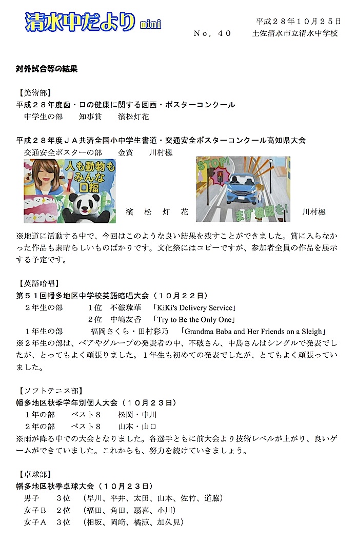 清水中だより mini No.40