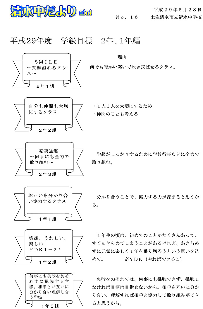 2017年度 清水中だより mini No.16