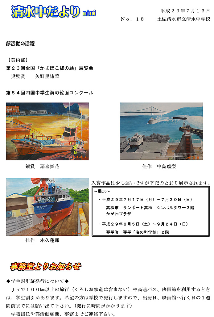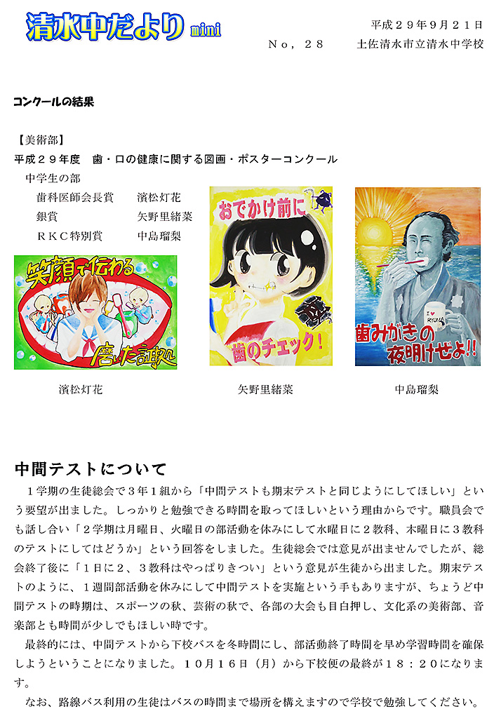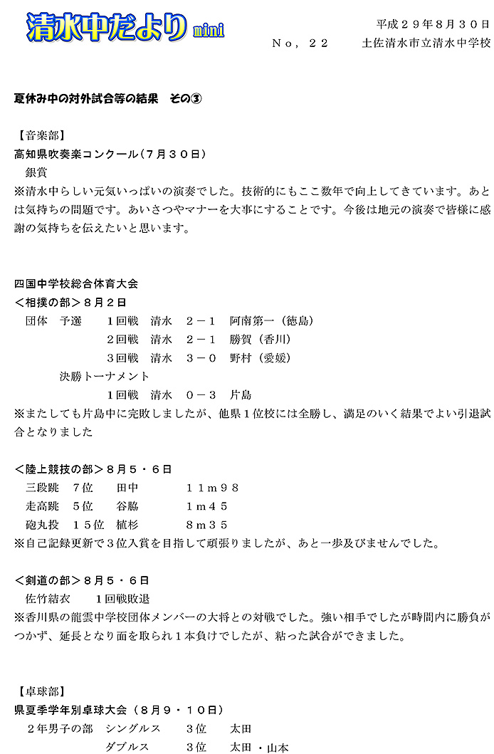 2017年度 清水中だより mini No.3
