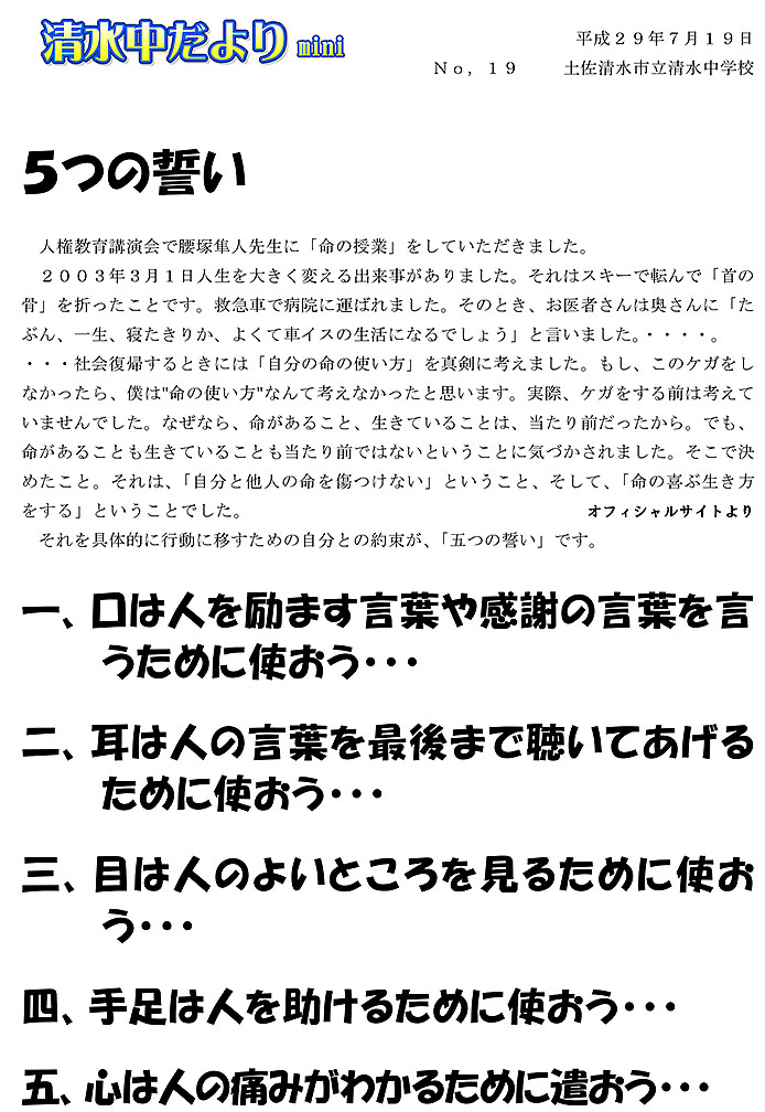 2017年度 清水中だより mini No.19