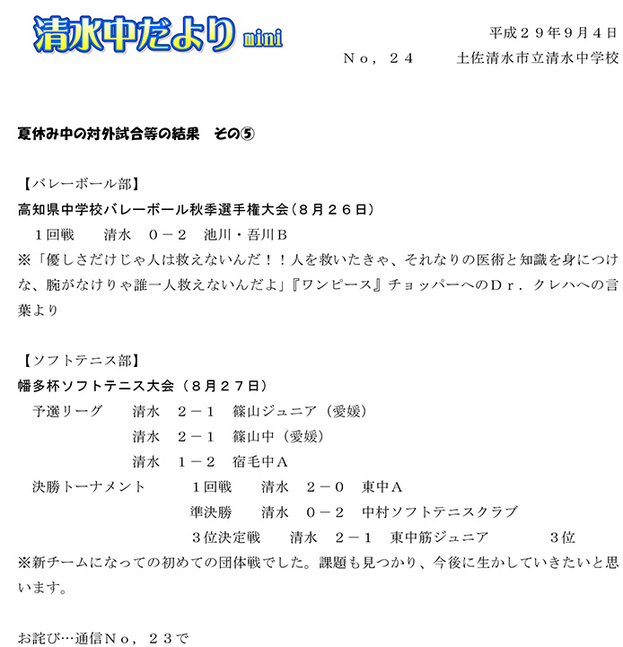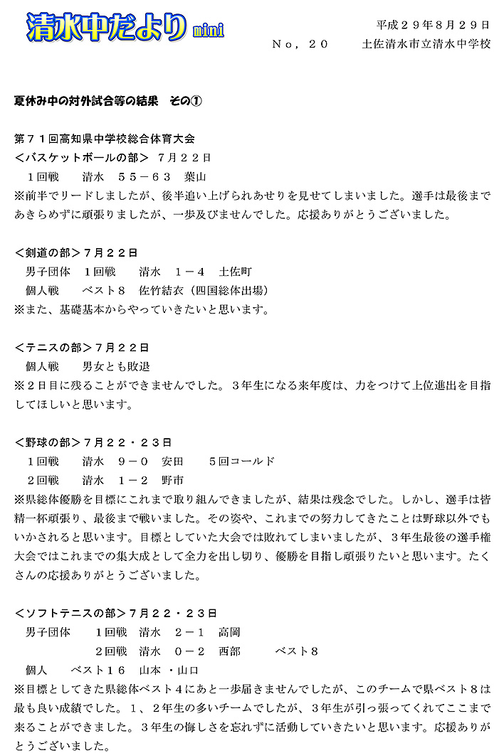 2017年度 清水中だより mini No.20~24