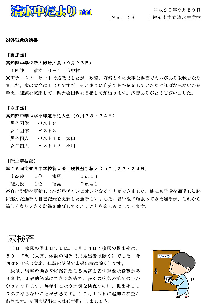 2017年度 清水中だより mini No.29
