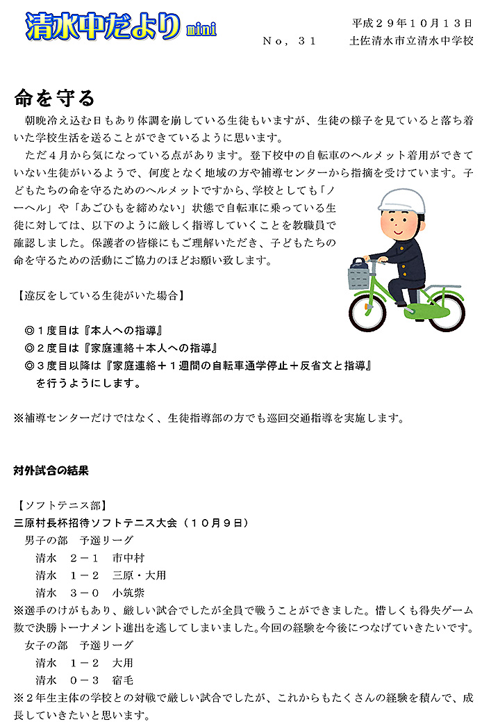 2017年度 清水中だより mini No.31