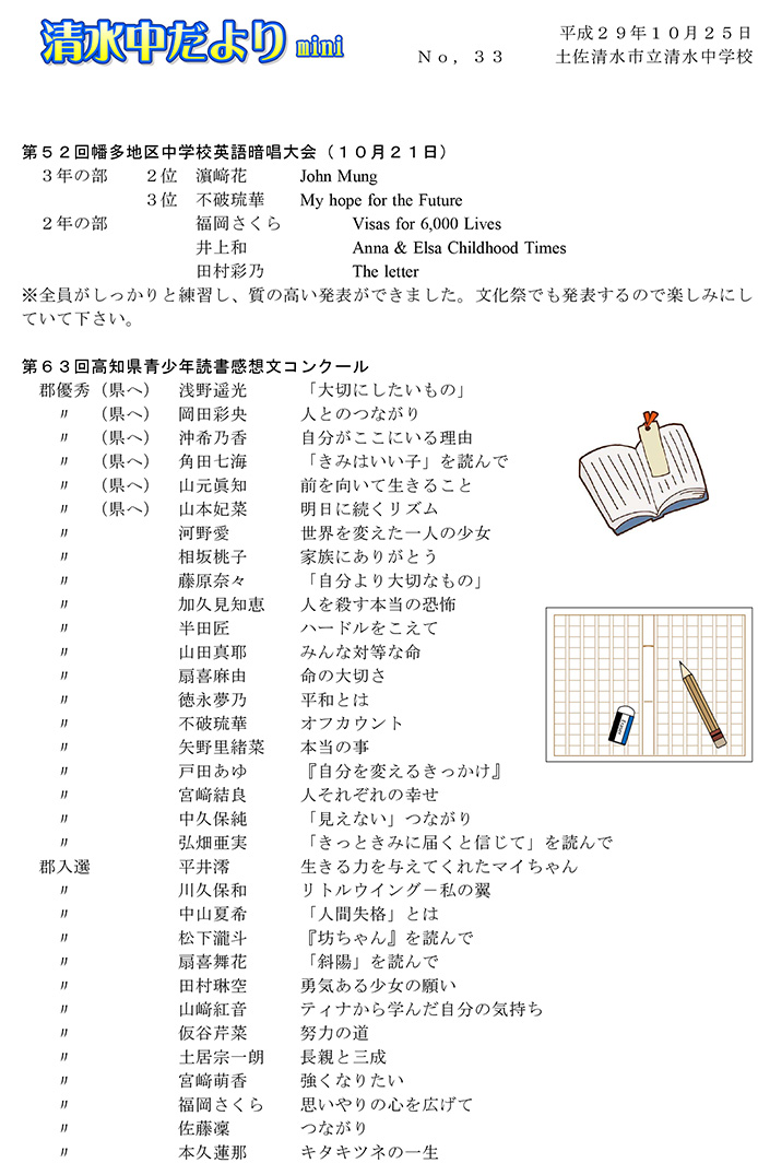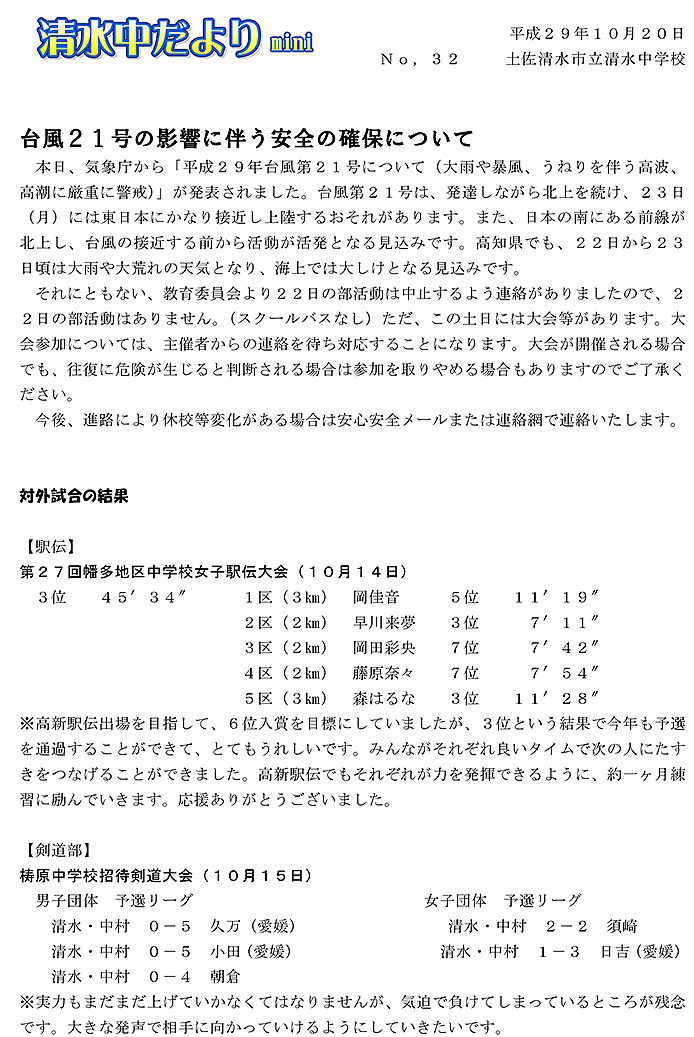 2017年度 清水中だより mini No.32