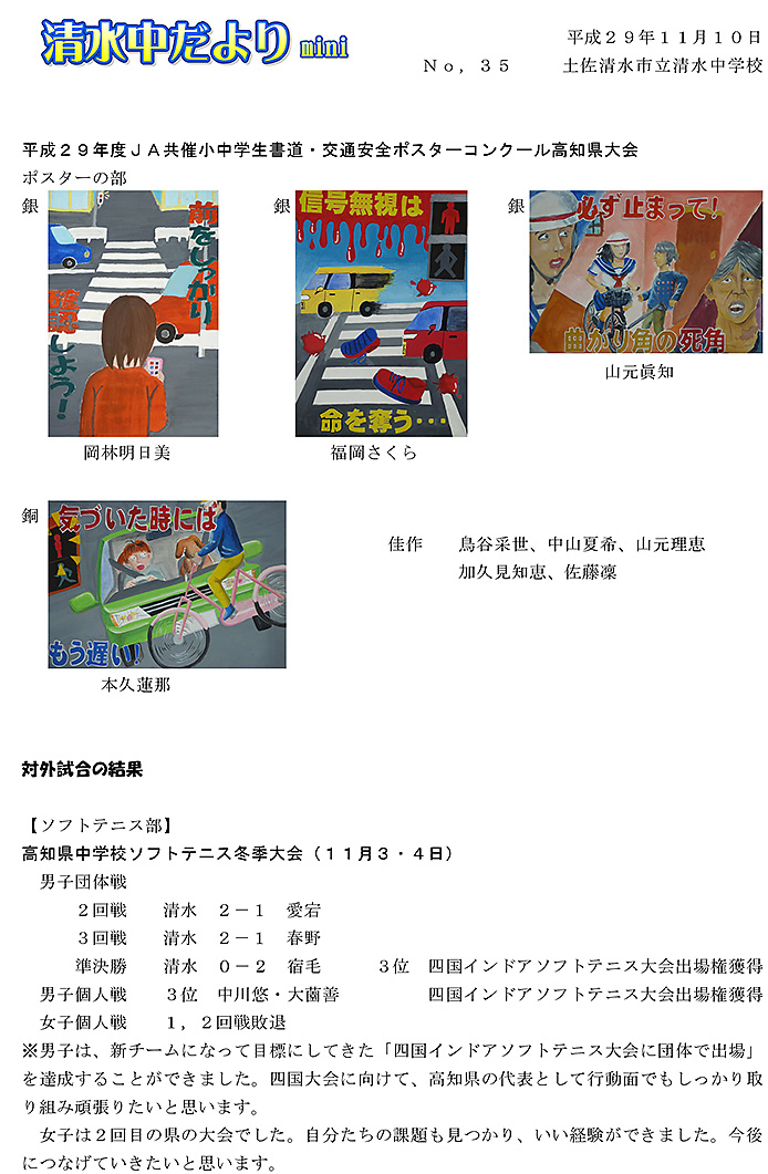 2017年度 清水中だより mini No.35