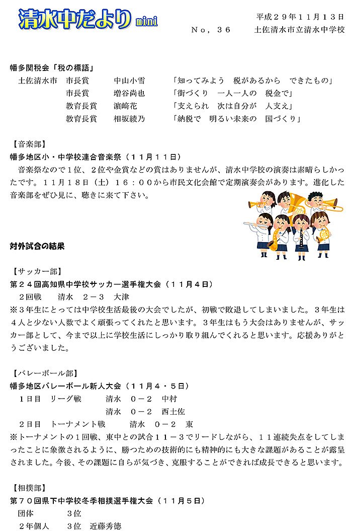 2017年度 清水中だより mini No.36