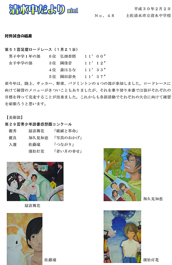 2017年度 清水中だより mini No.48