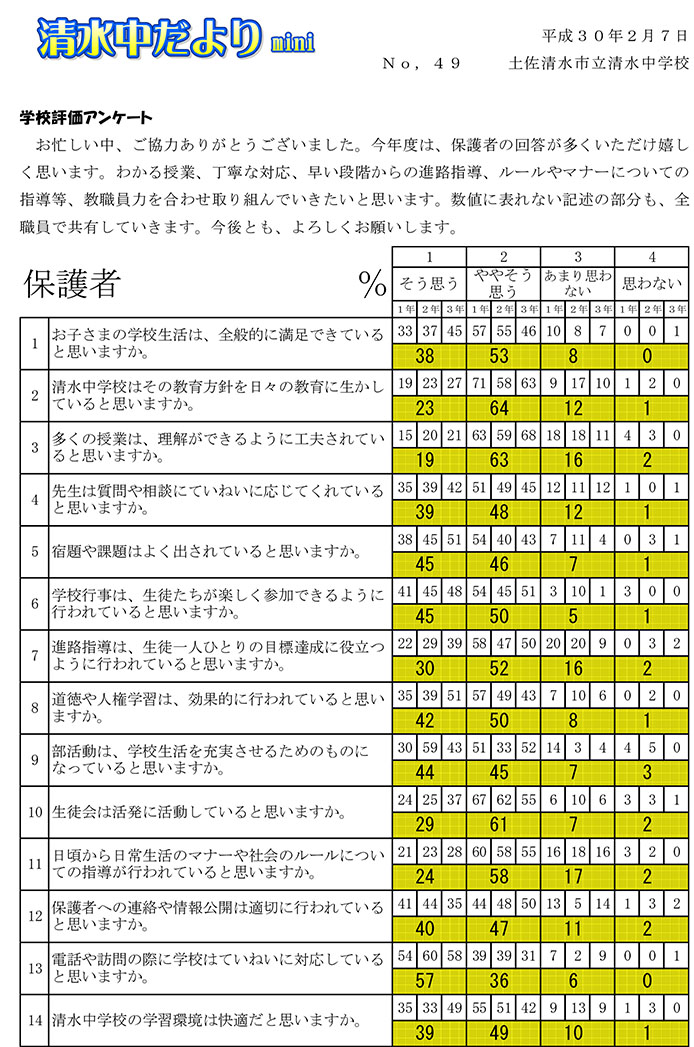 2017年度 清水中だより mini No.49