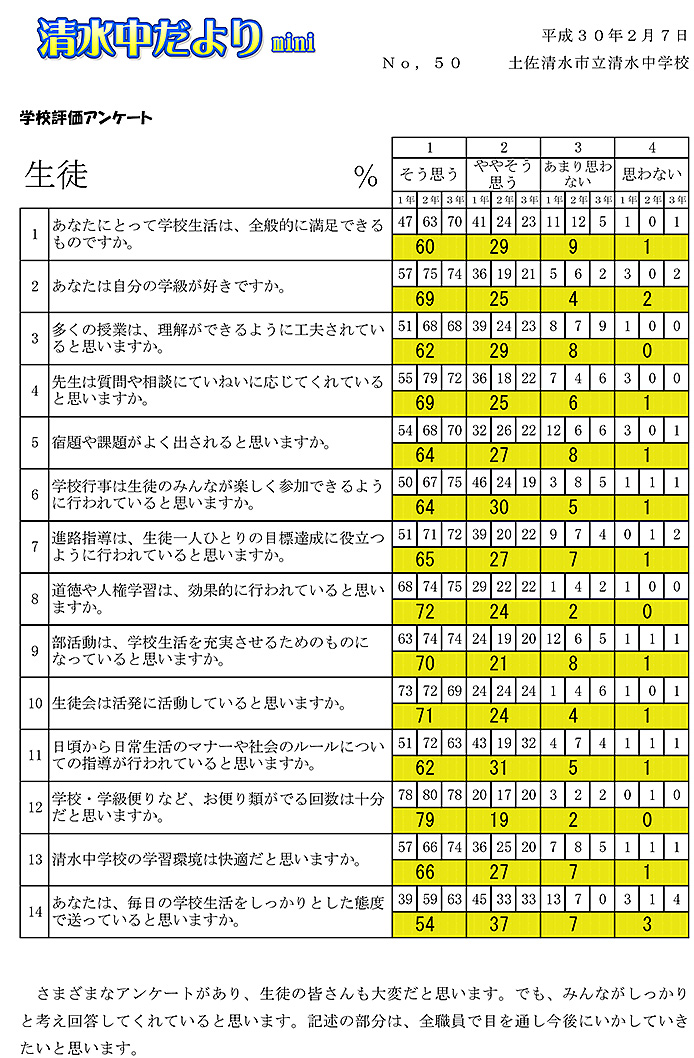 2017年度 清水中だより mini No.50